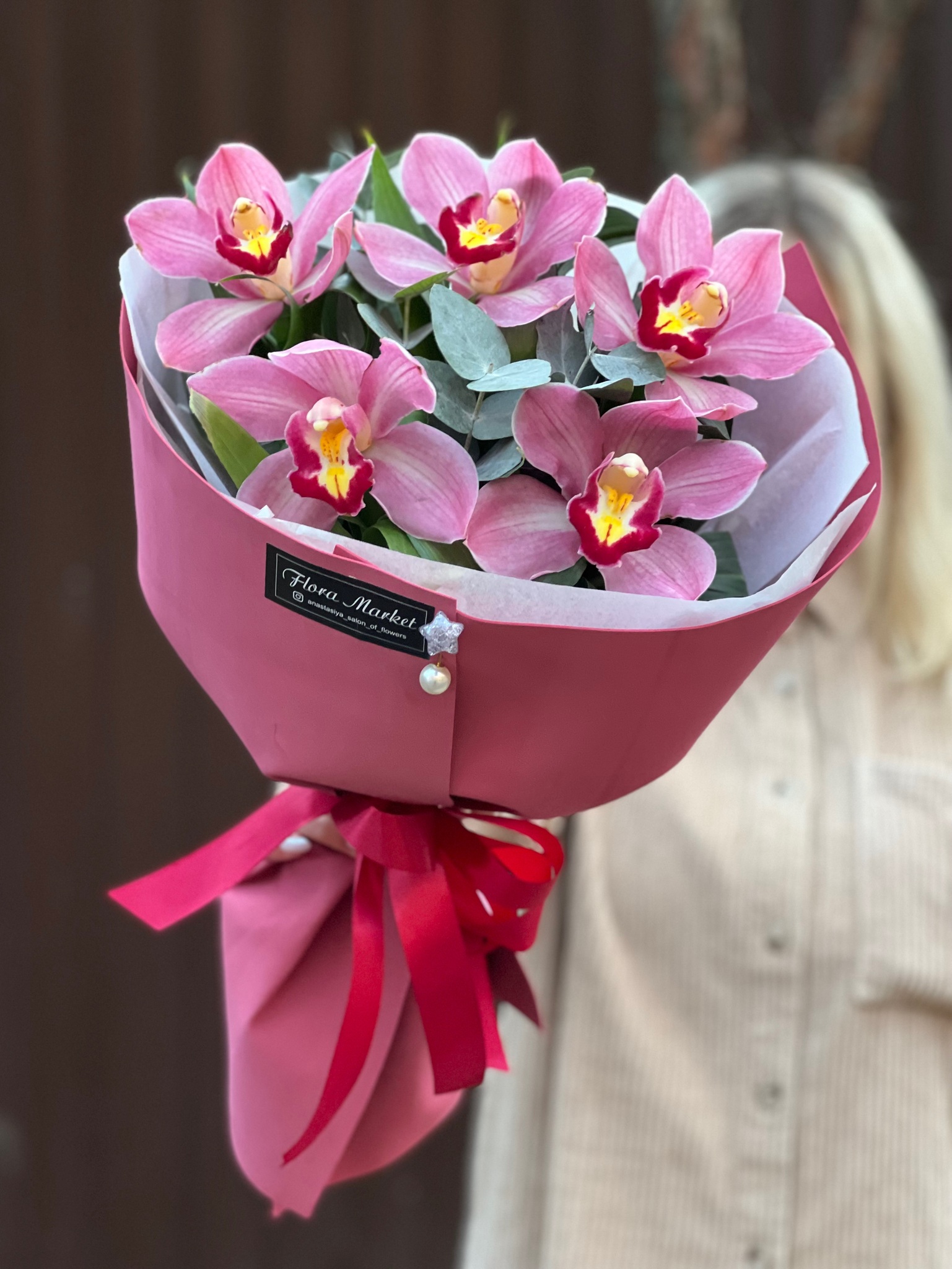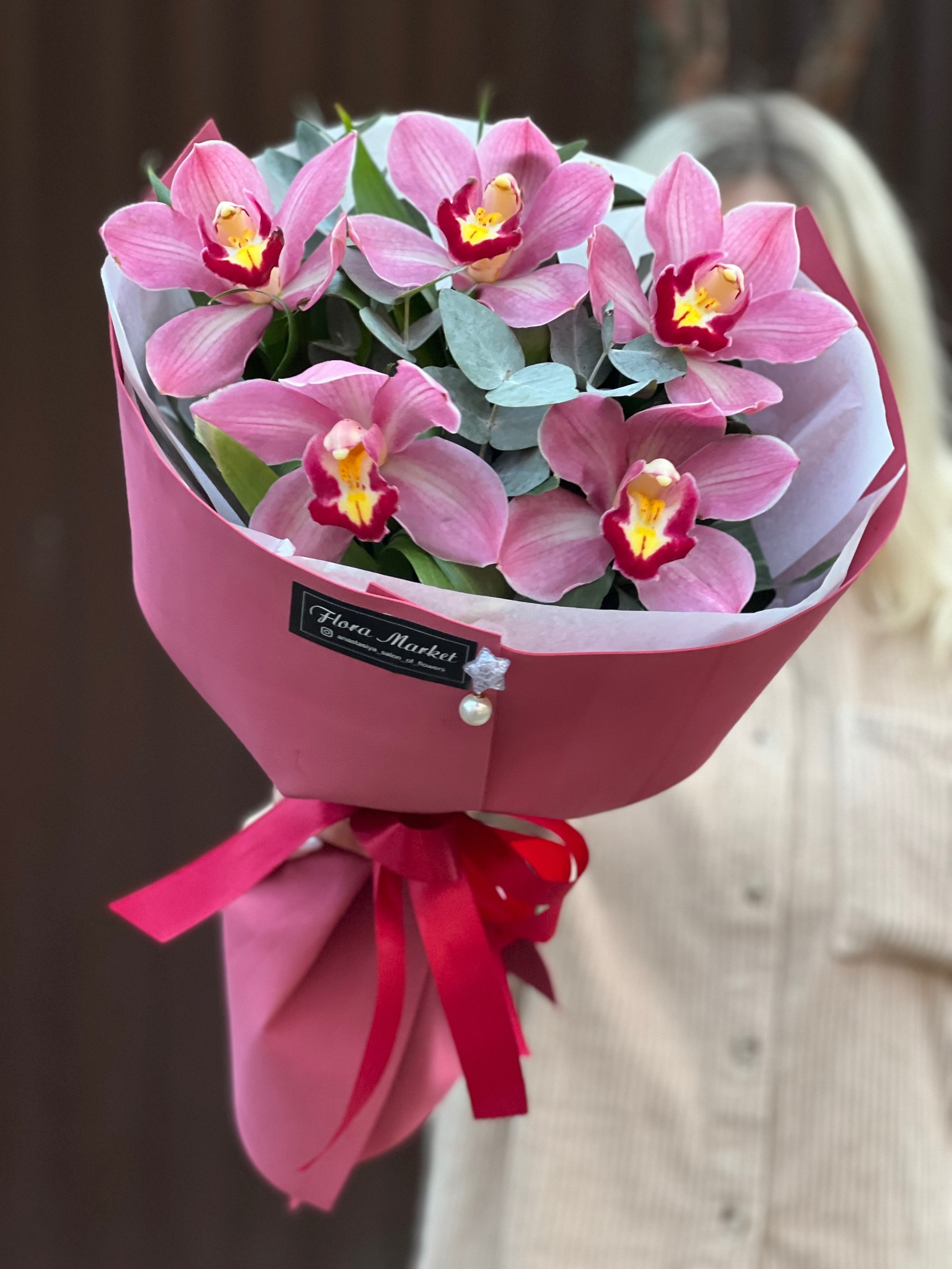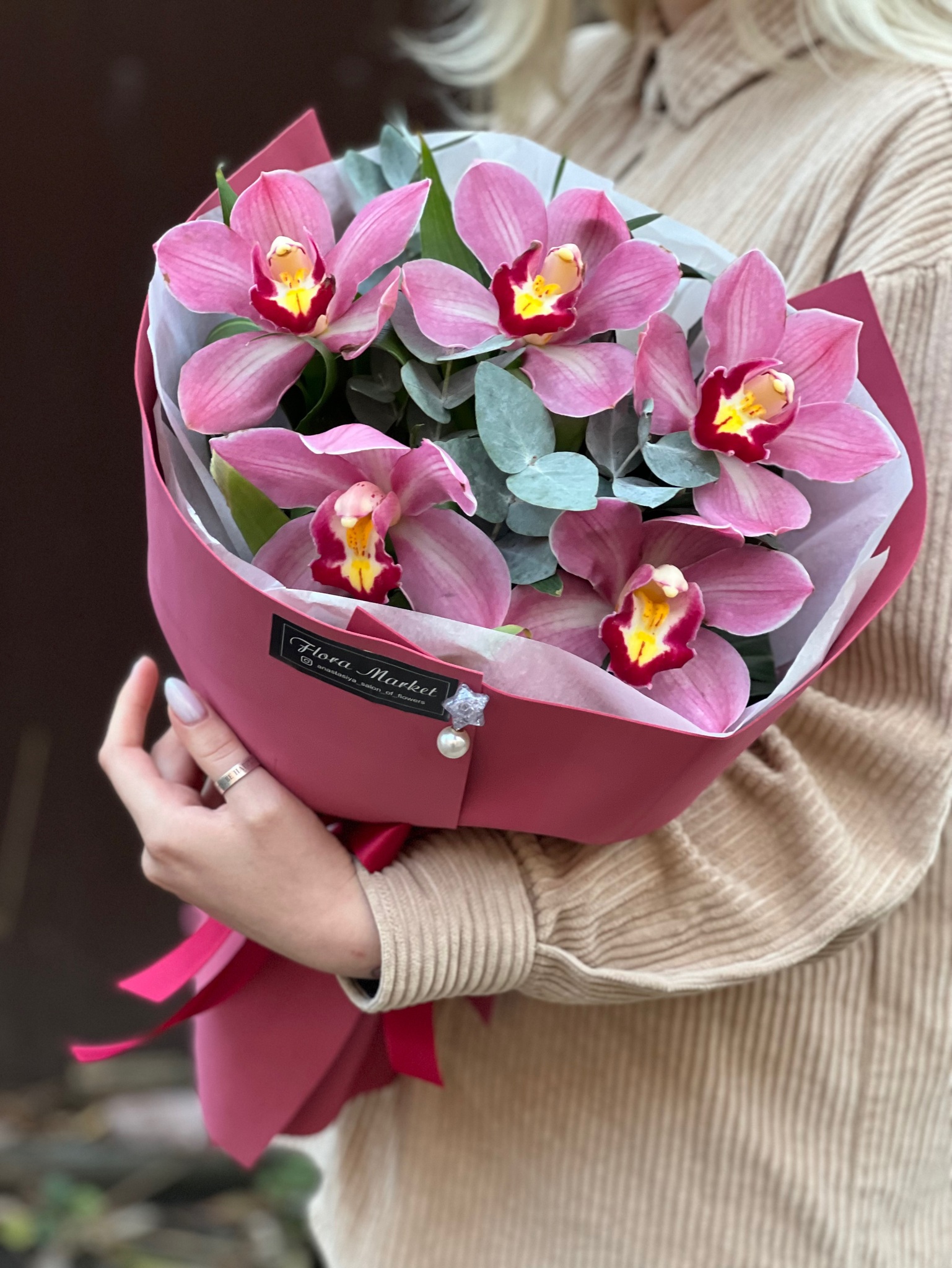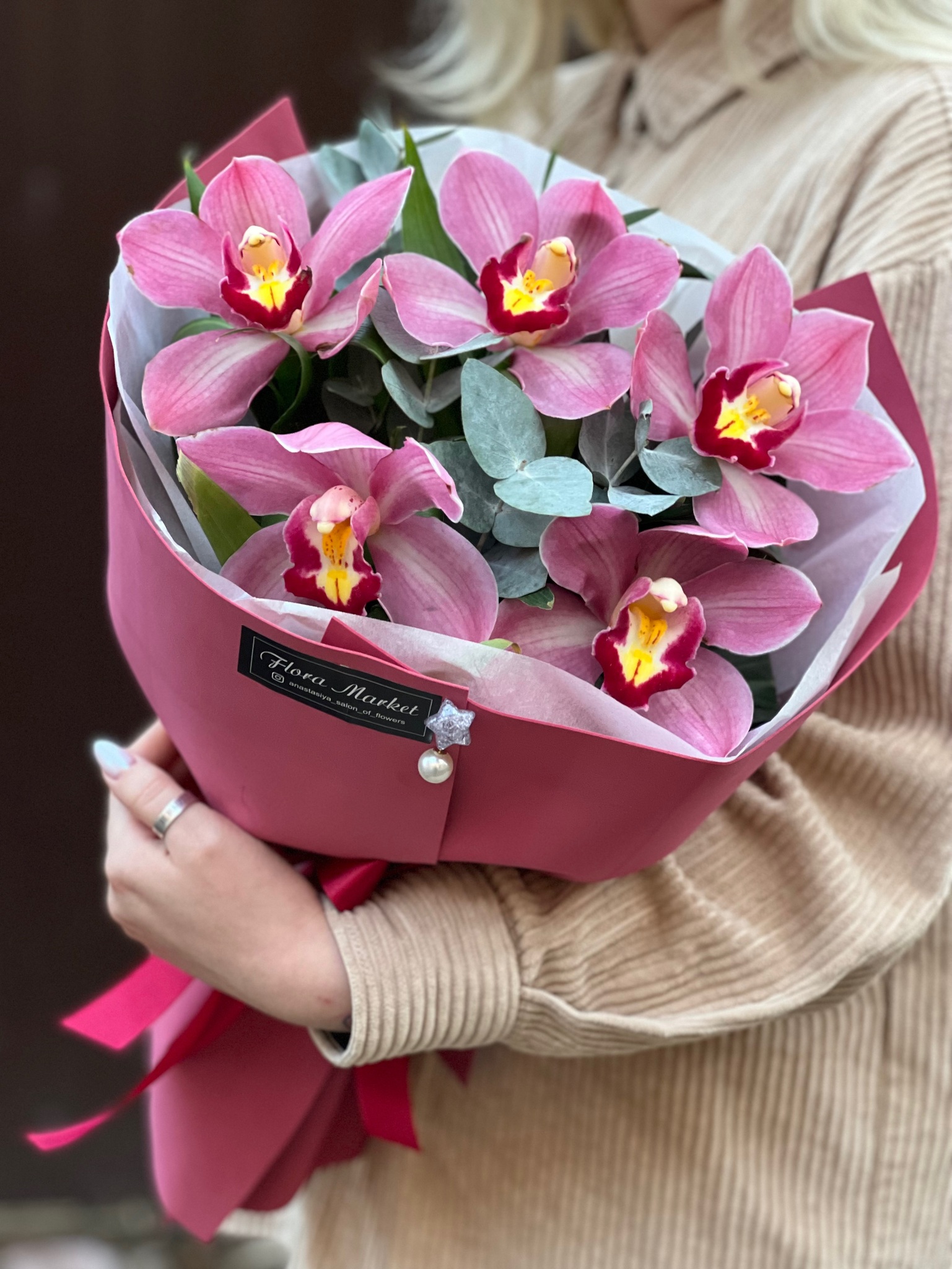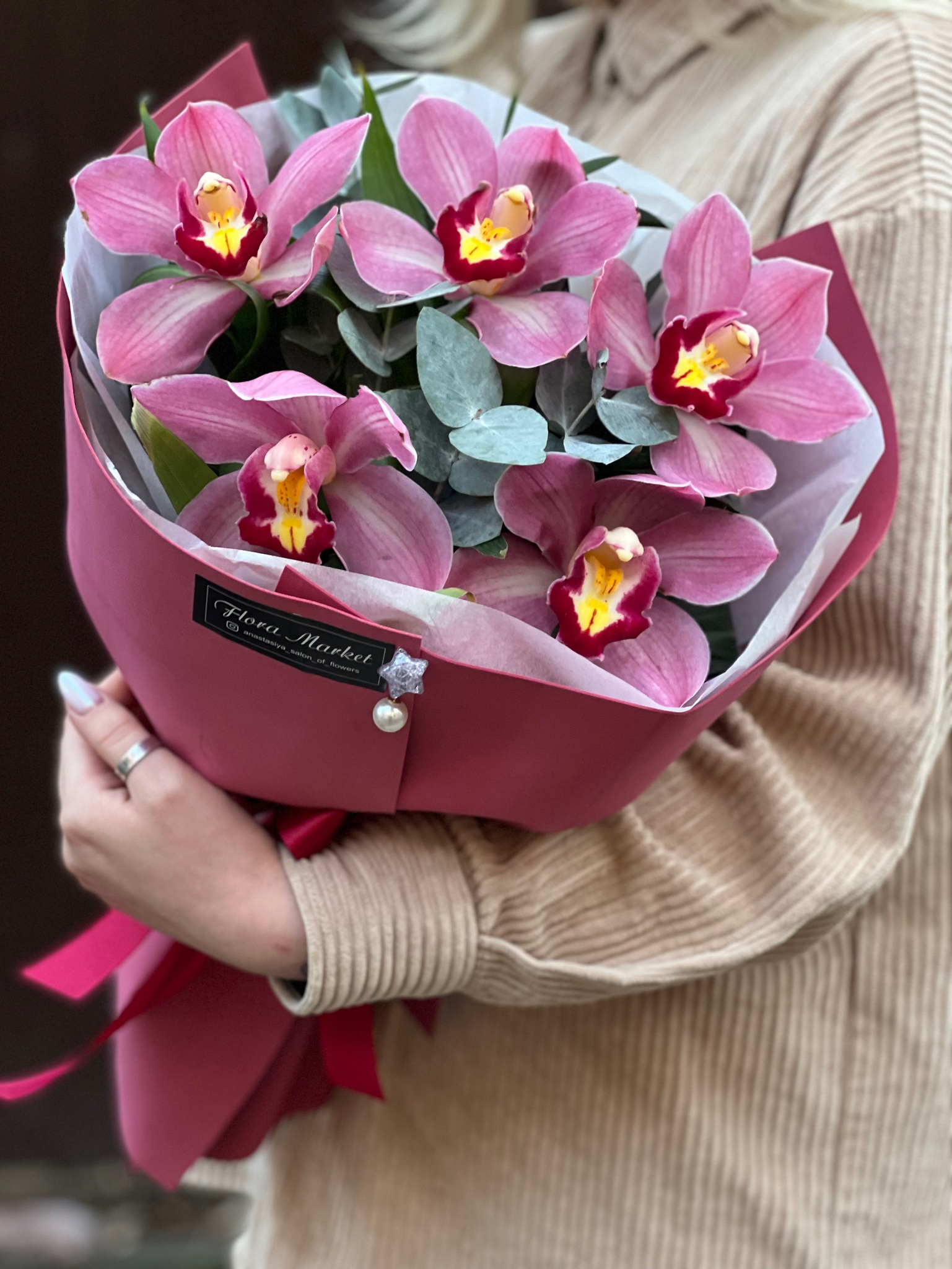 Подарите своей любимым нежный и изысканный букет из орхидеи цимбидиум и эвкалипта, который не только порадует получателя, но и наполнит дом ароматами природы. Орхидея цимбидиум символизирует роскошь, благородство и утонченность, в то время как эвкалипт добавляет особую свежесть. Закажите его сейчас - это лучший способ выразить свою любовь!
