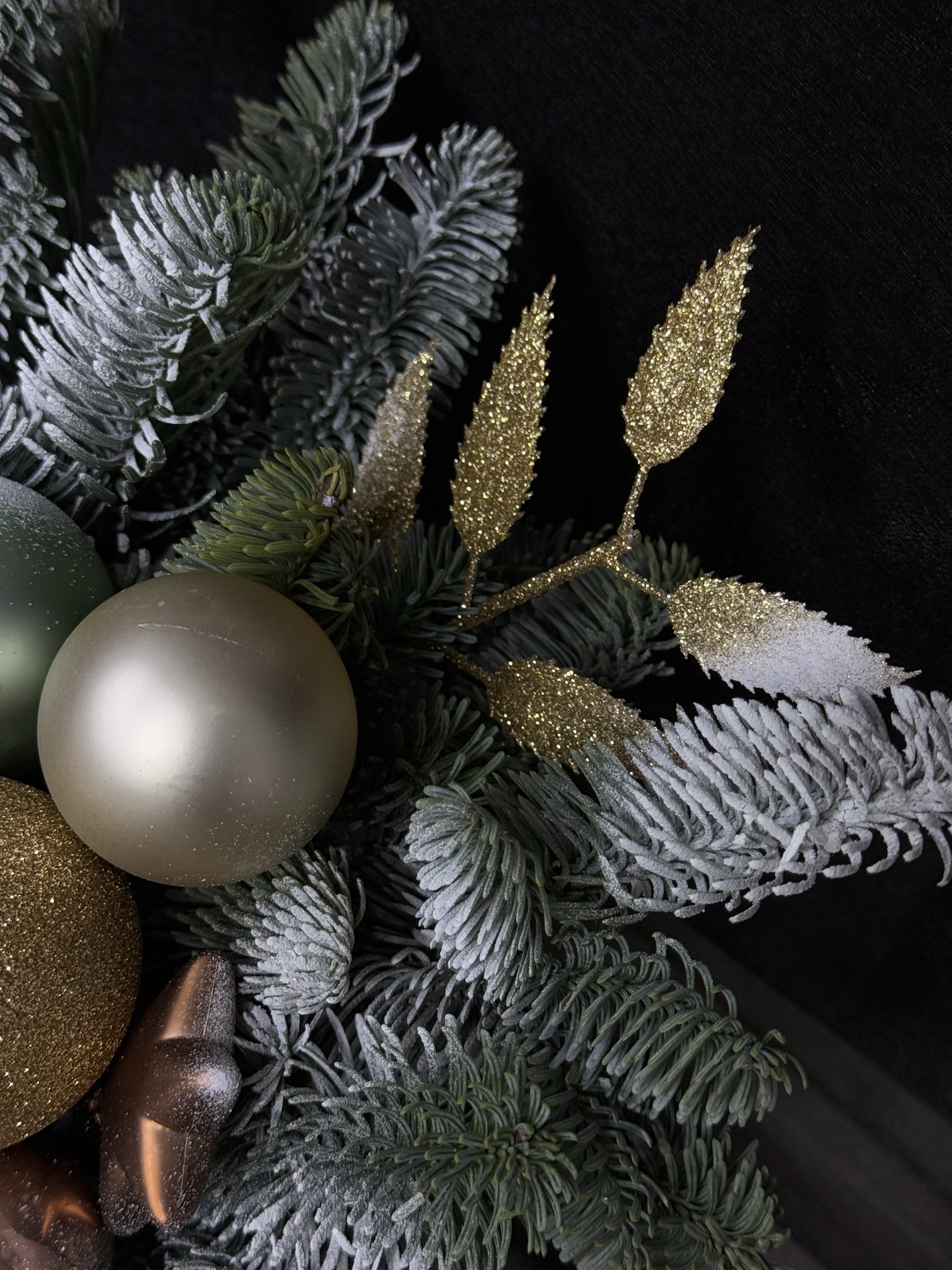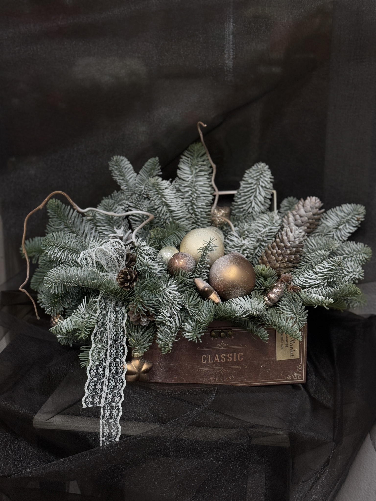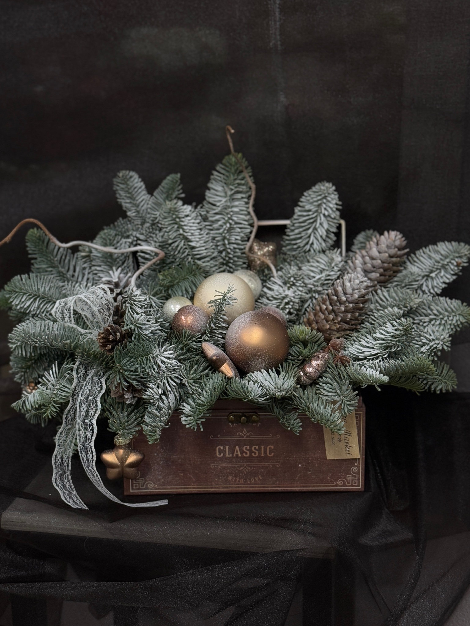 Создайте атмосферу праздника в вашем доме с нашей эксклюзивной композицией из пушистых ветвей нобилиса и изысканных украшений, которые придадут вашему интерьеру уют и элегантность. Идеально подходит для создания сказочного зимнего настроения. Ощутите магию каждого мгновения с нашим уникальной композицией!