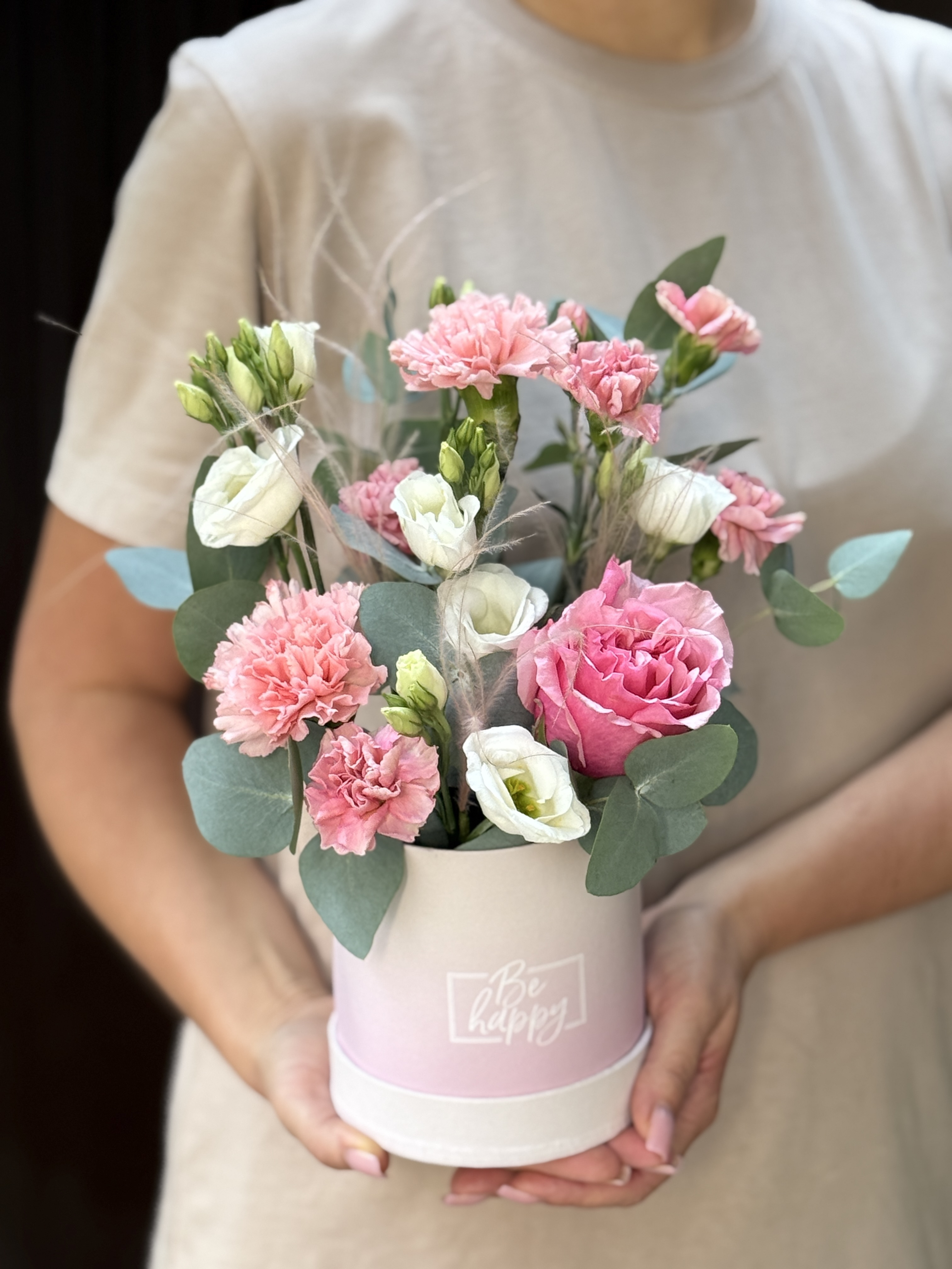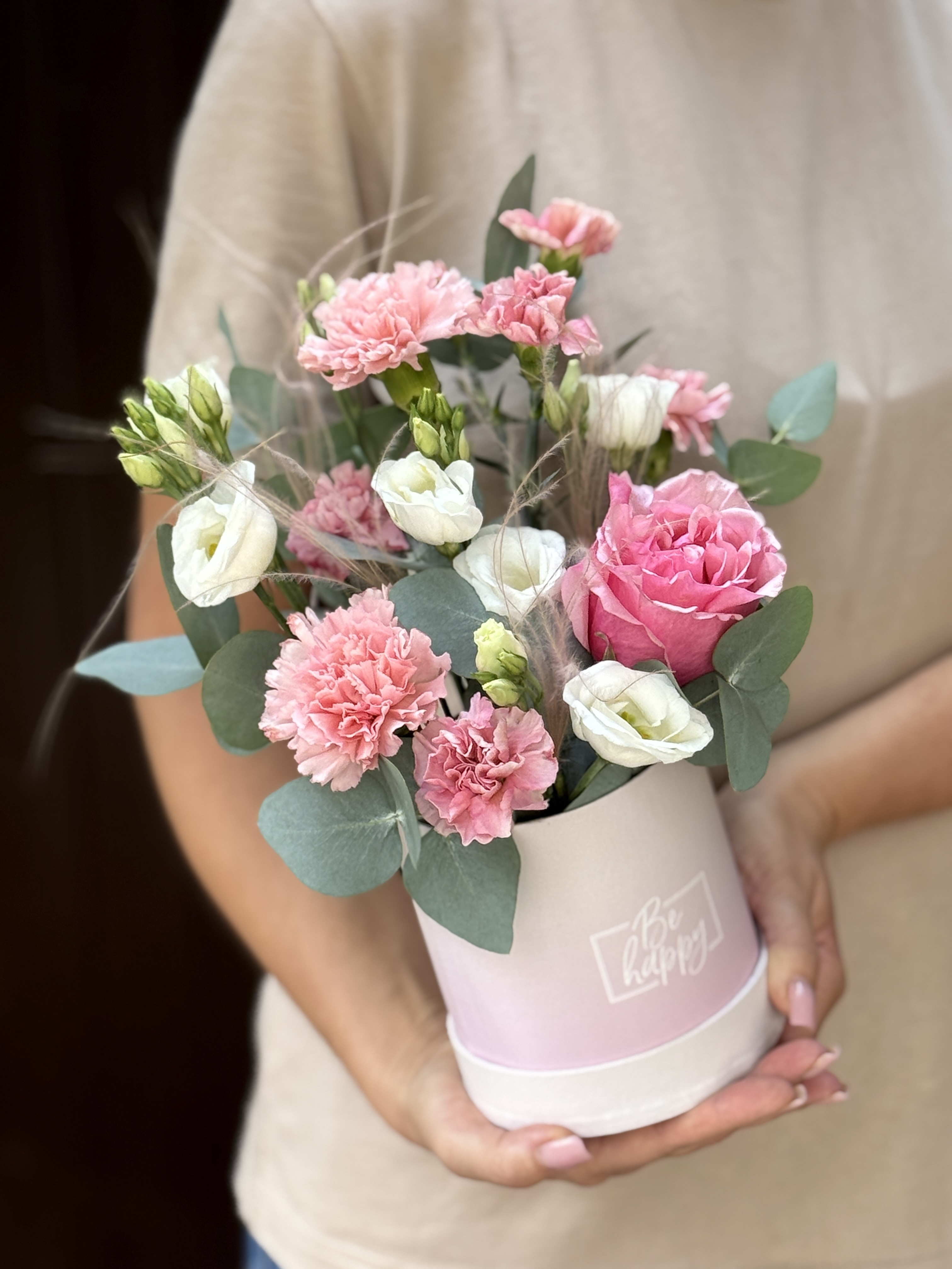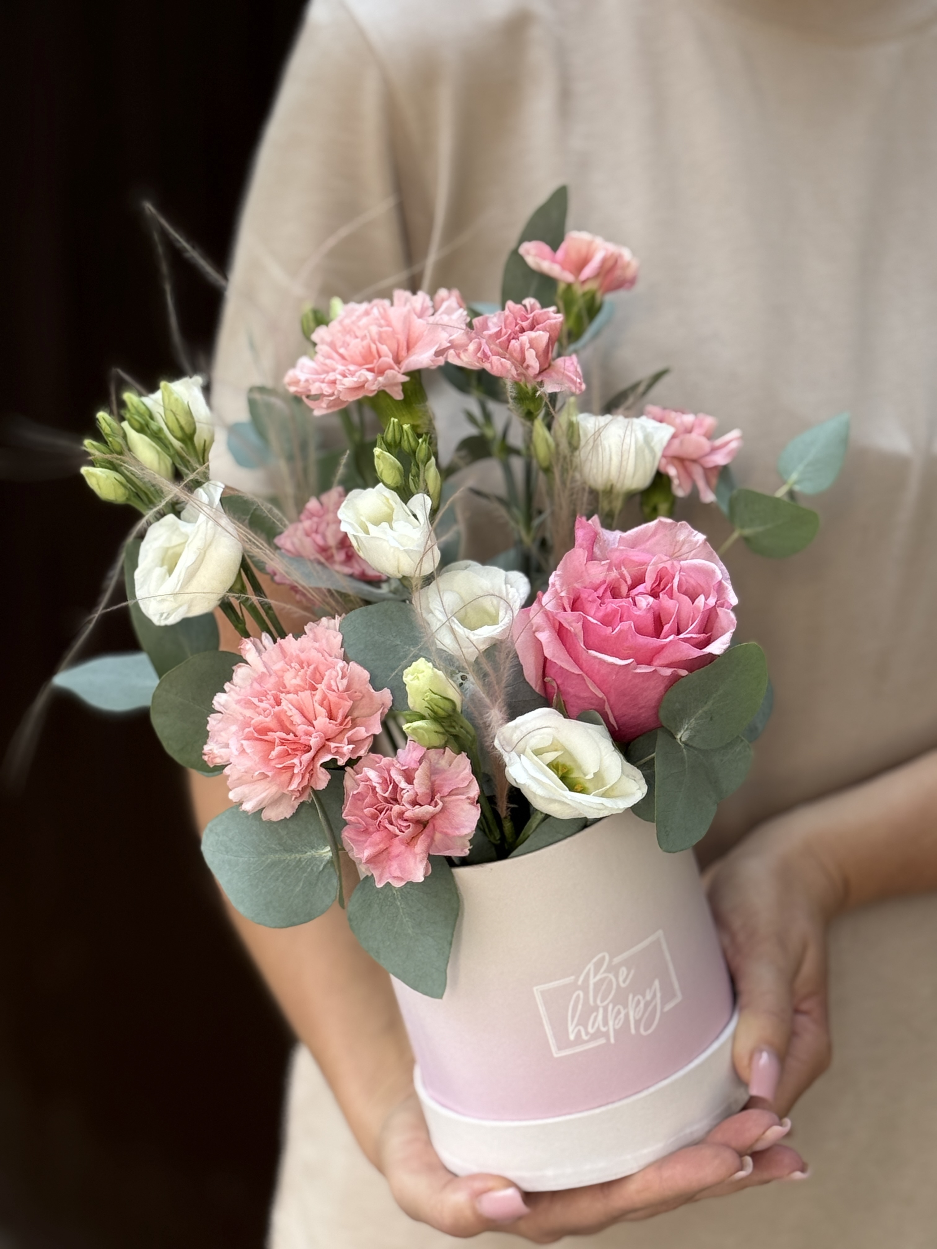 Утонченная композиция из сезонных цветов в розовой гамме от Флора Маркет.